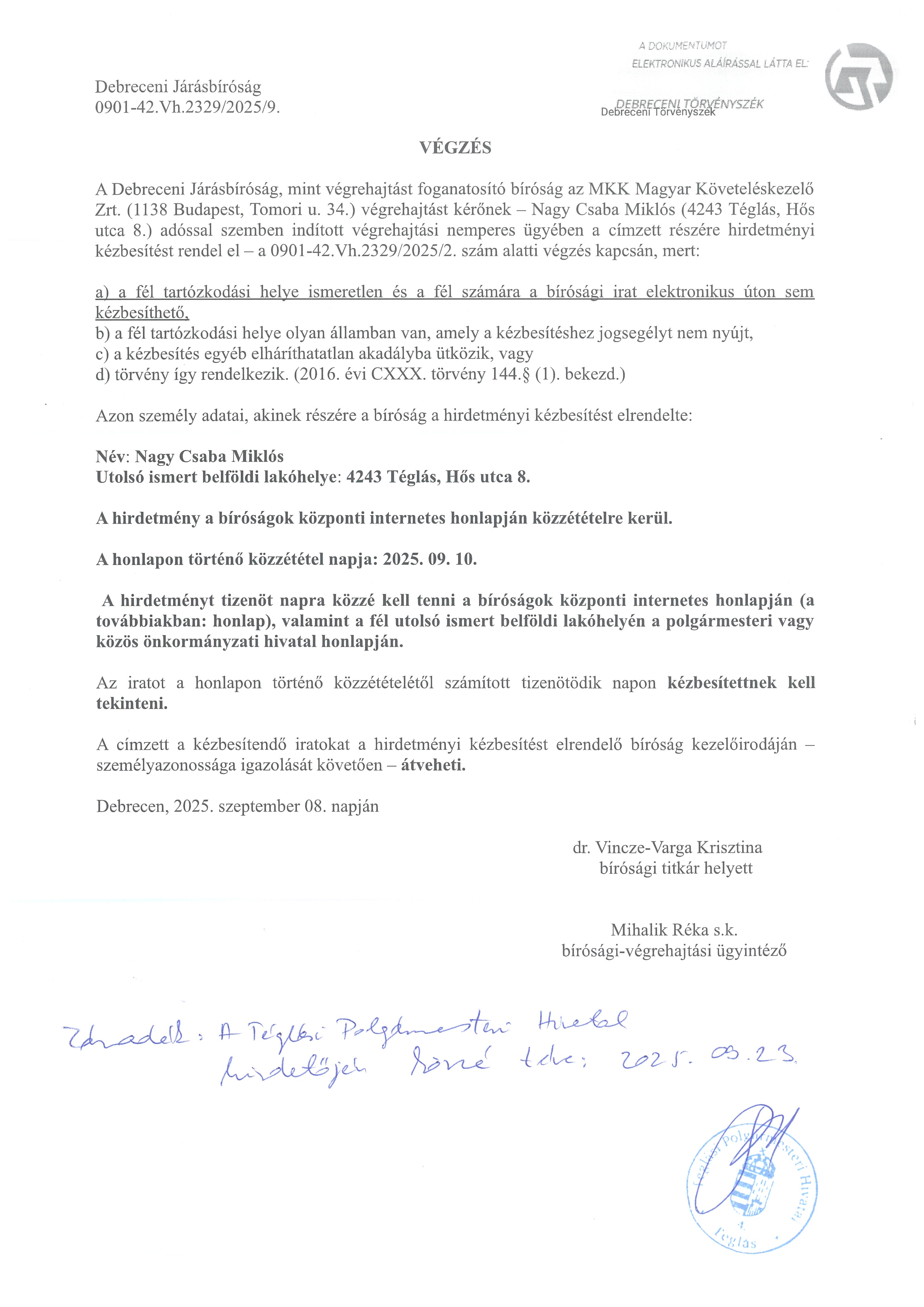 Téglás Város Önkormányzat Képviselő-testülete 2025. szeptember 25-i ülésén alkotott önkormányzati rendeletek kihirdetése.