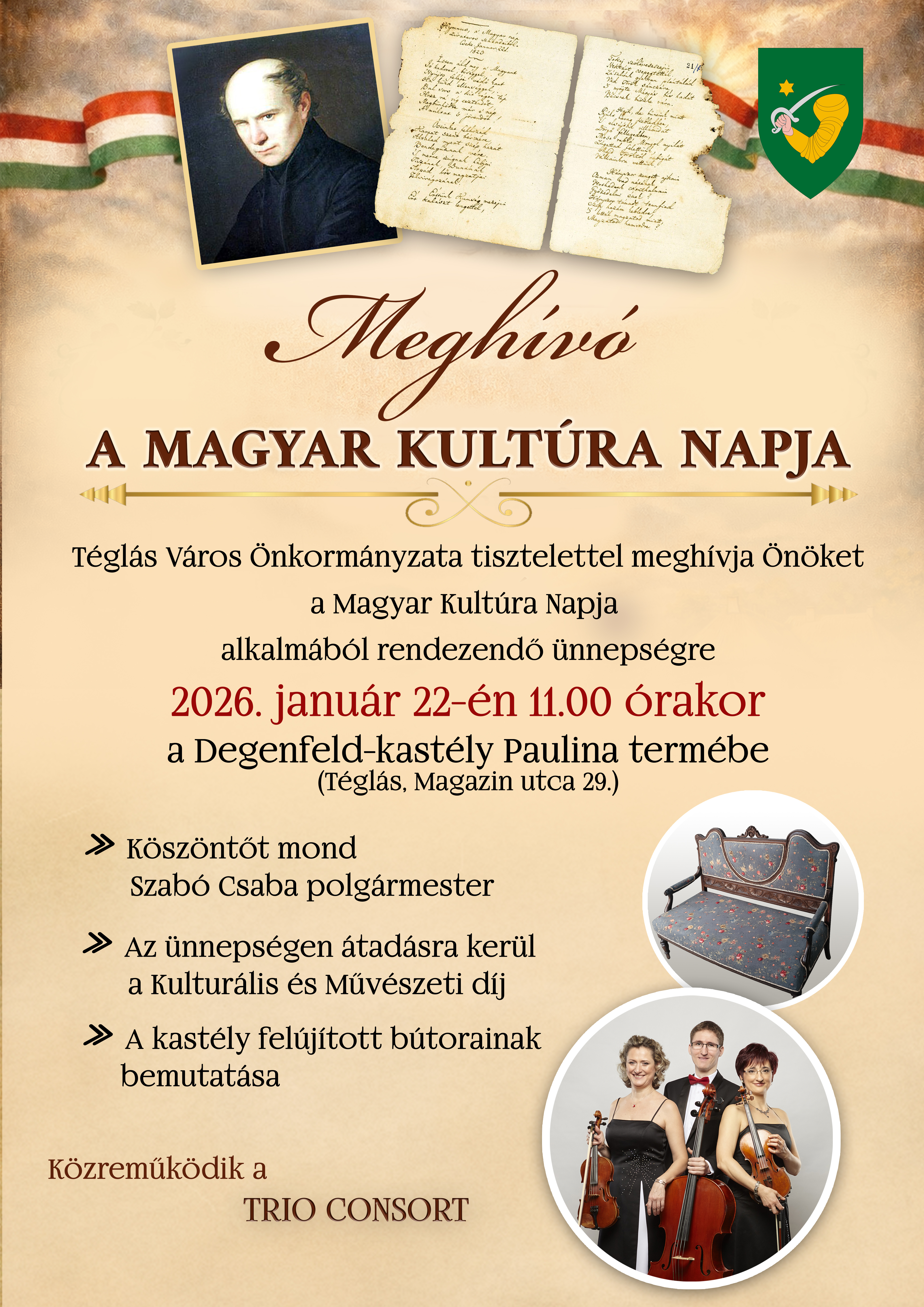Téglás Város Önkormányzata Képviselő-testülete 2026. január 29-én 15.00 órakor tartja soron következő ülését.