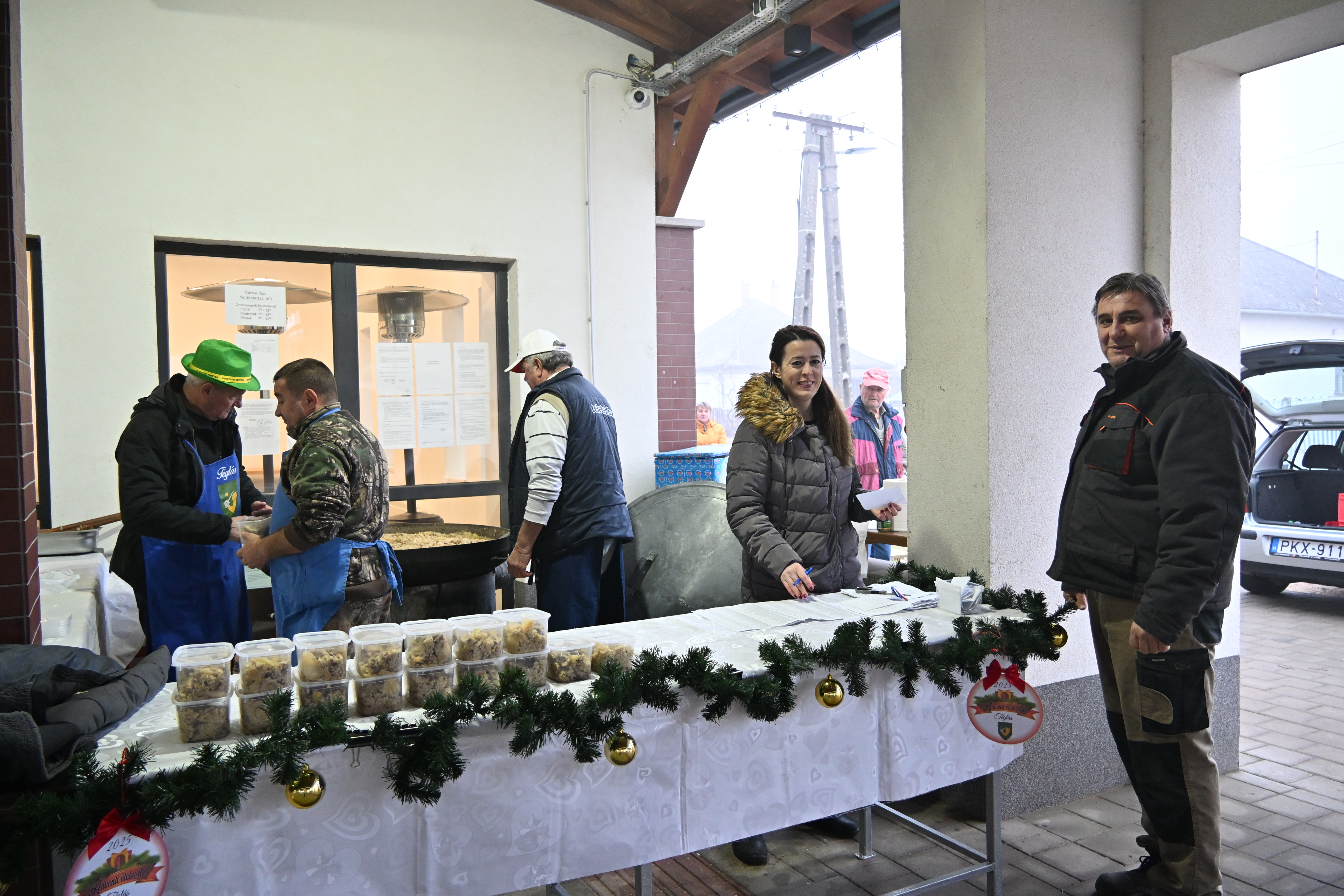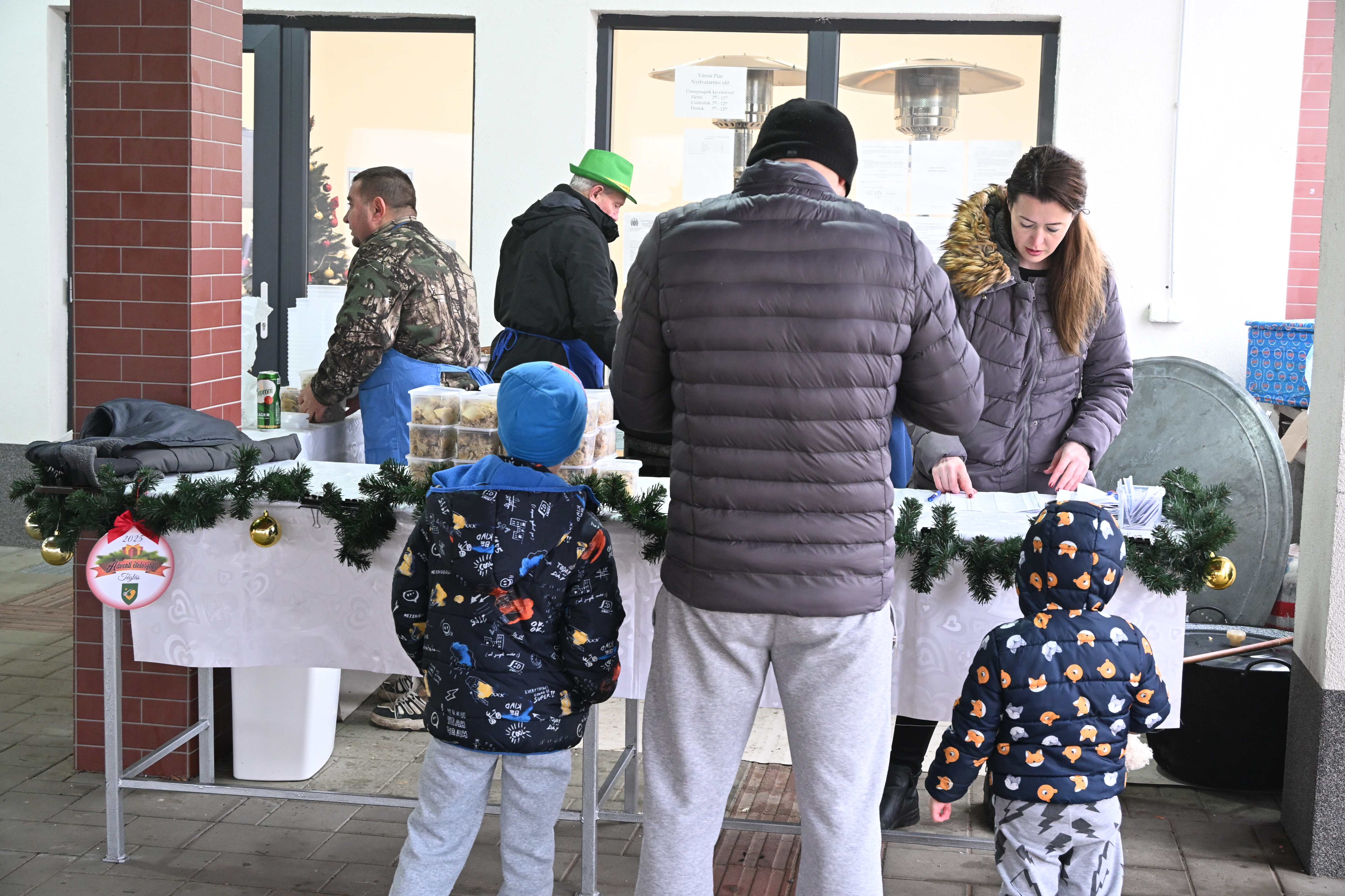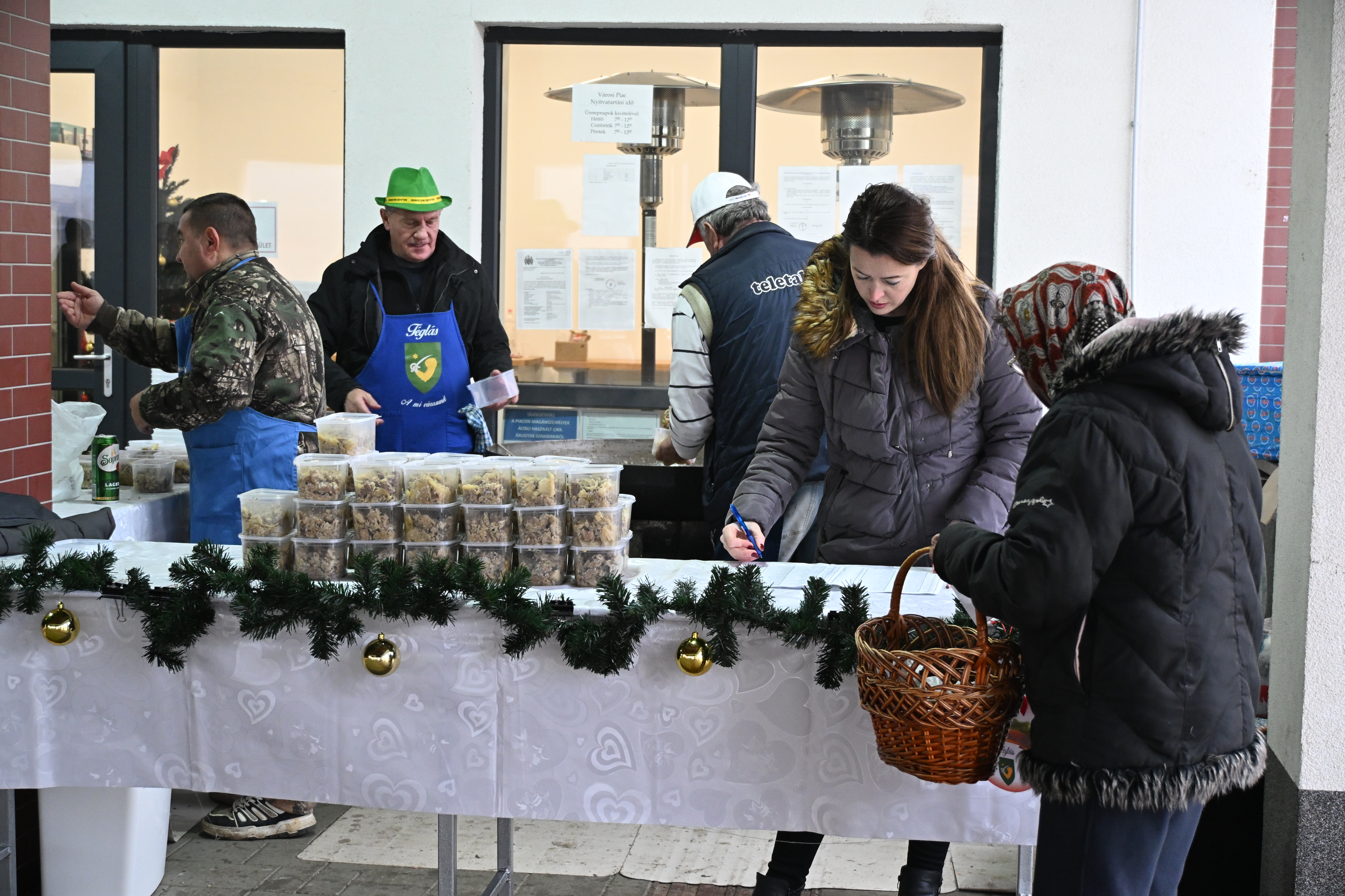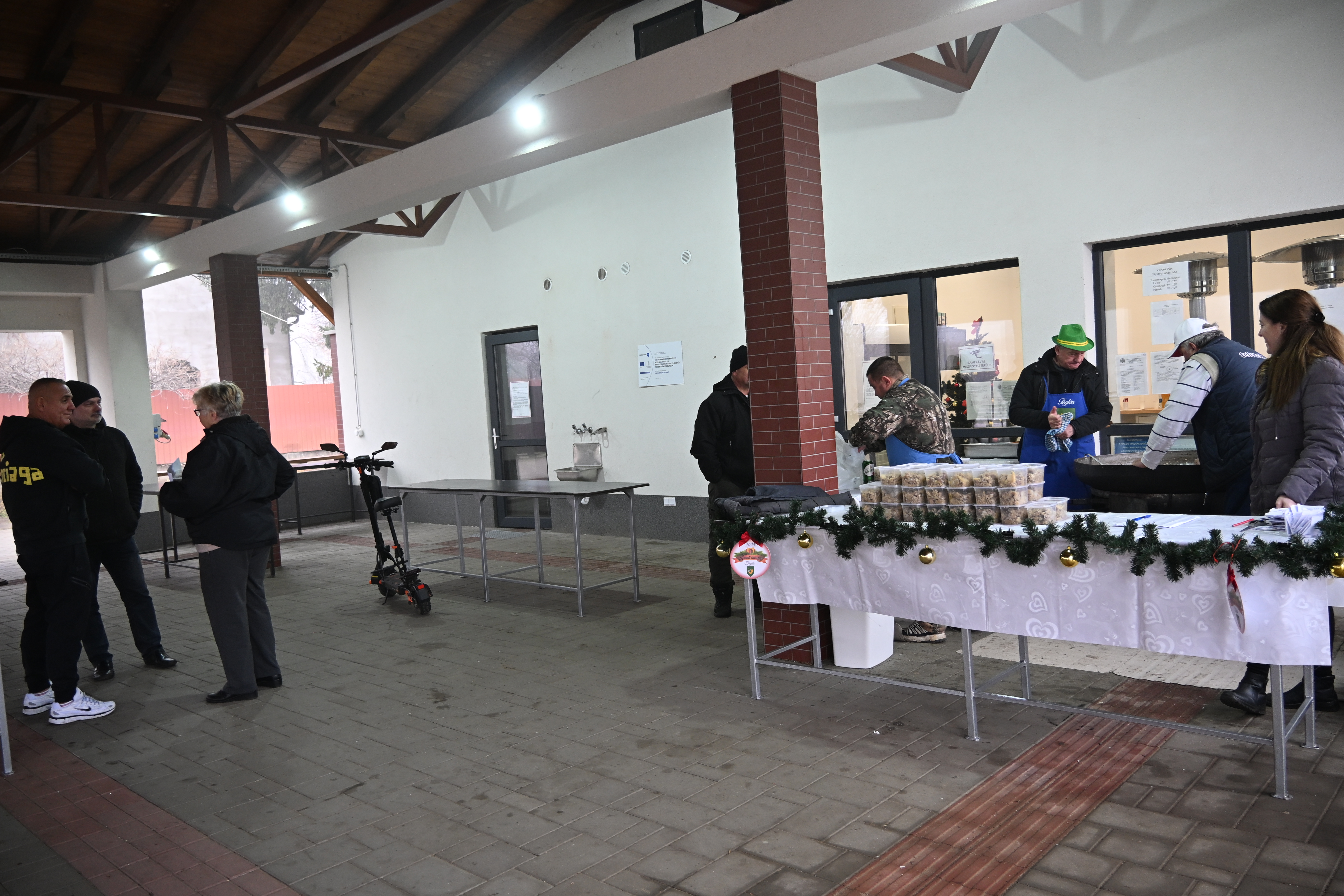2025. december 13-án szombaton 250 adag Babgulyást osztottunk szét, az Itt és Most Egyesület Téglási Konyhája felajánlásából. A Sigér Klán Kft. pedig 250 db buktát ajánlott fel.