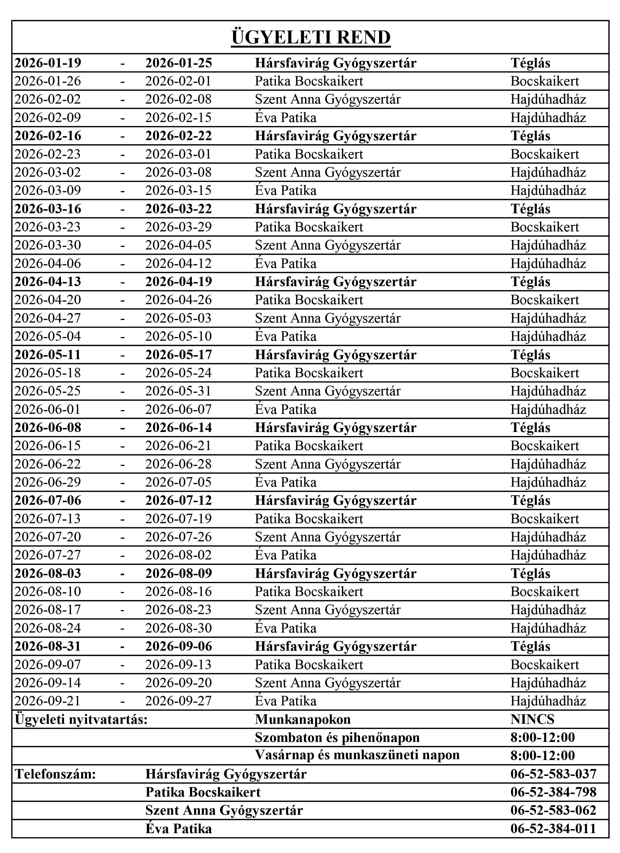 GYÓGYSZERTÁRI ÜGYELETI REND