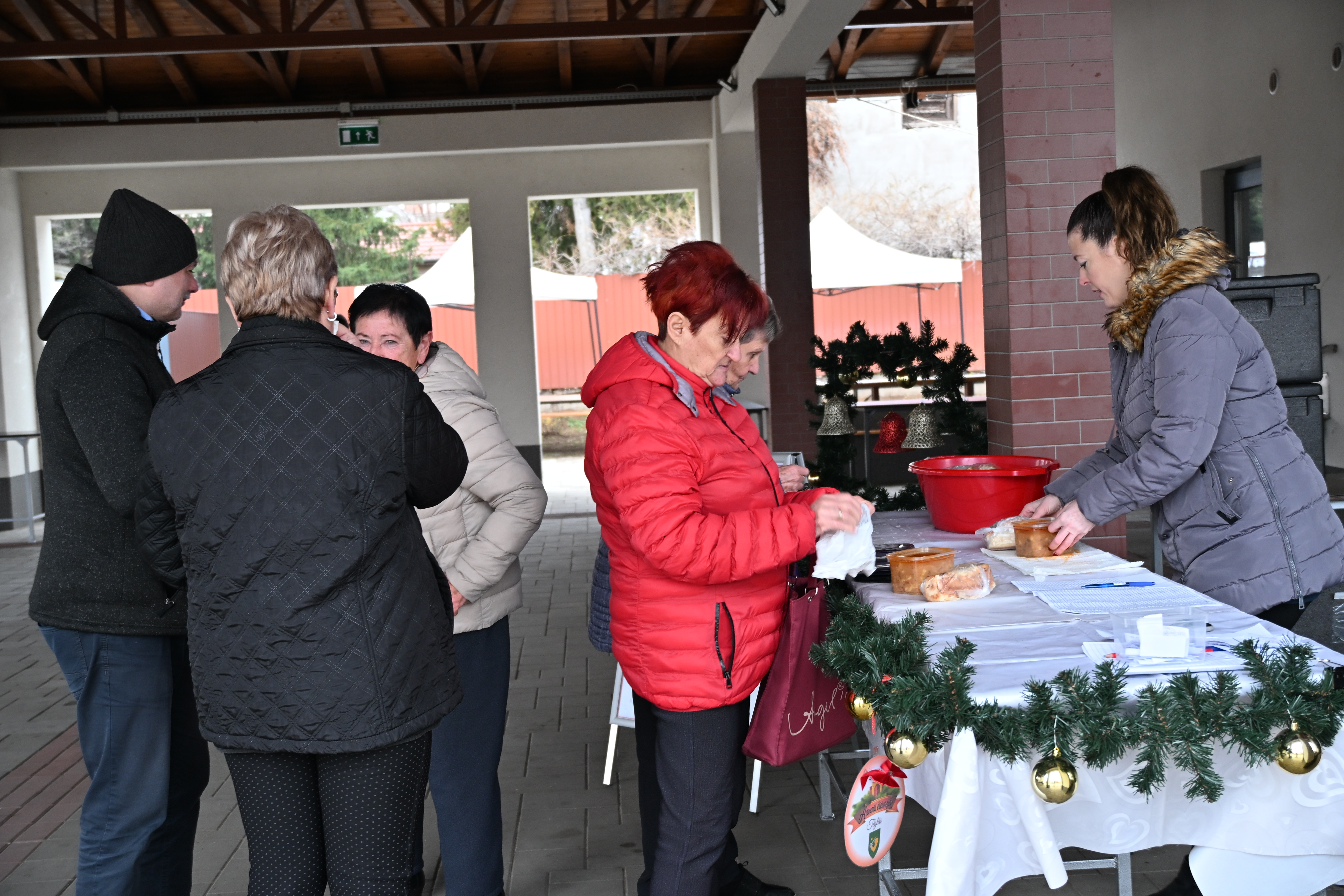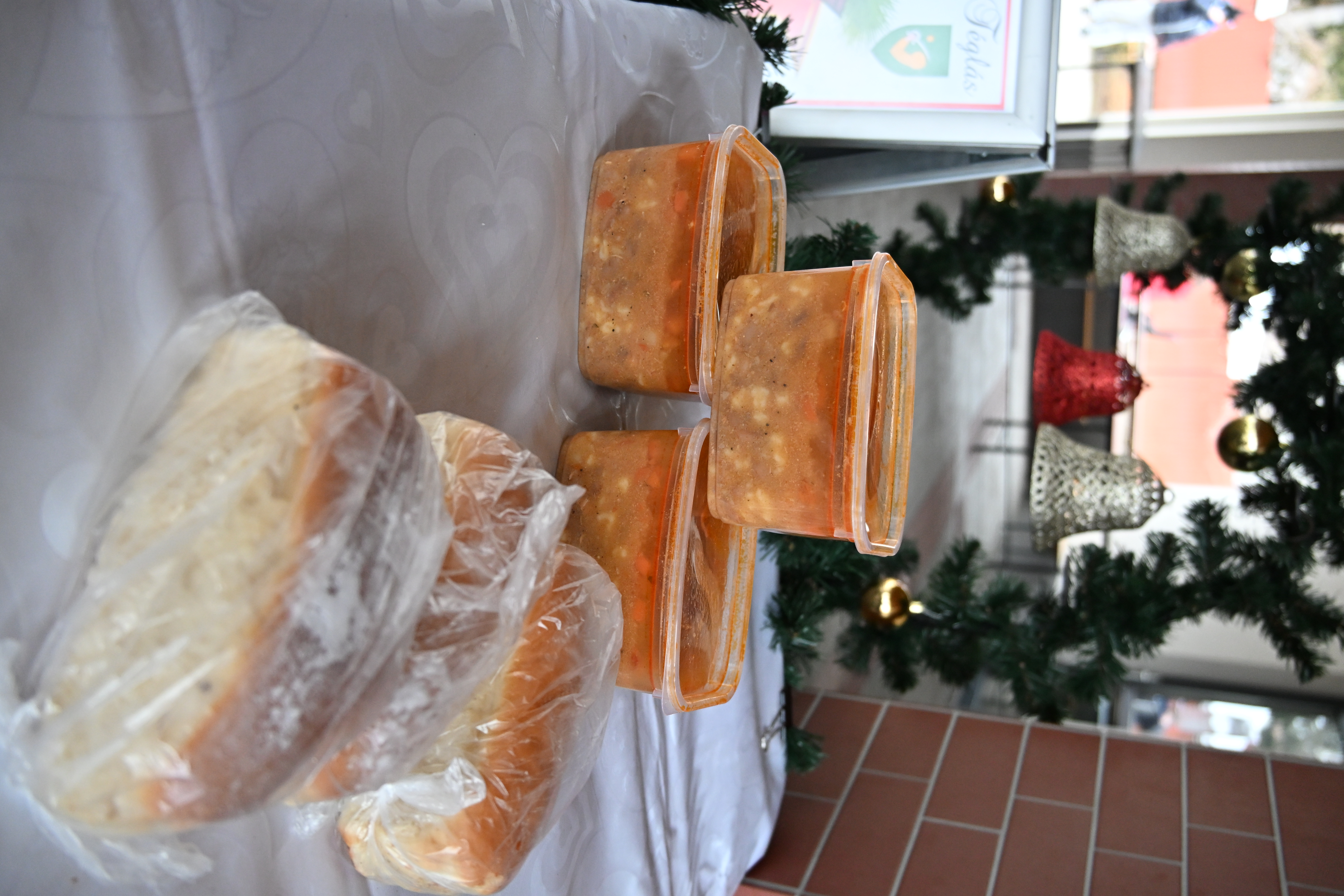 2025. december 13-án szombaton 250 adag Babgulyást osztottunk szét, az Itt és Most Egyesület Téglási Konyhája felajánlásából. A Sigér Klán Kft. pedig 250 db buktát ajánlott fel.