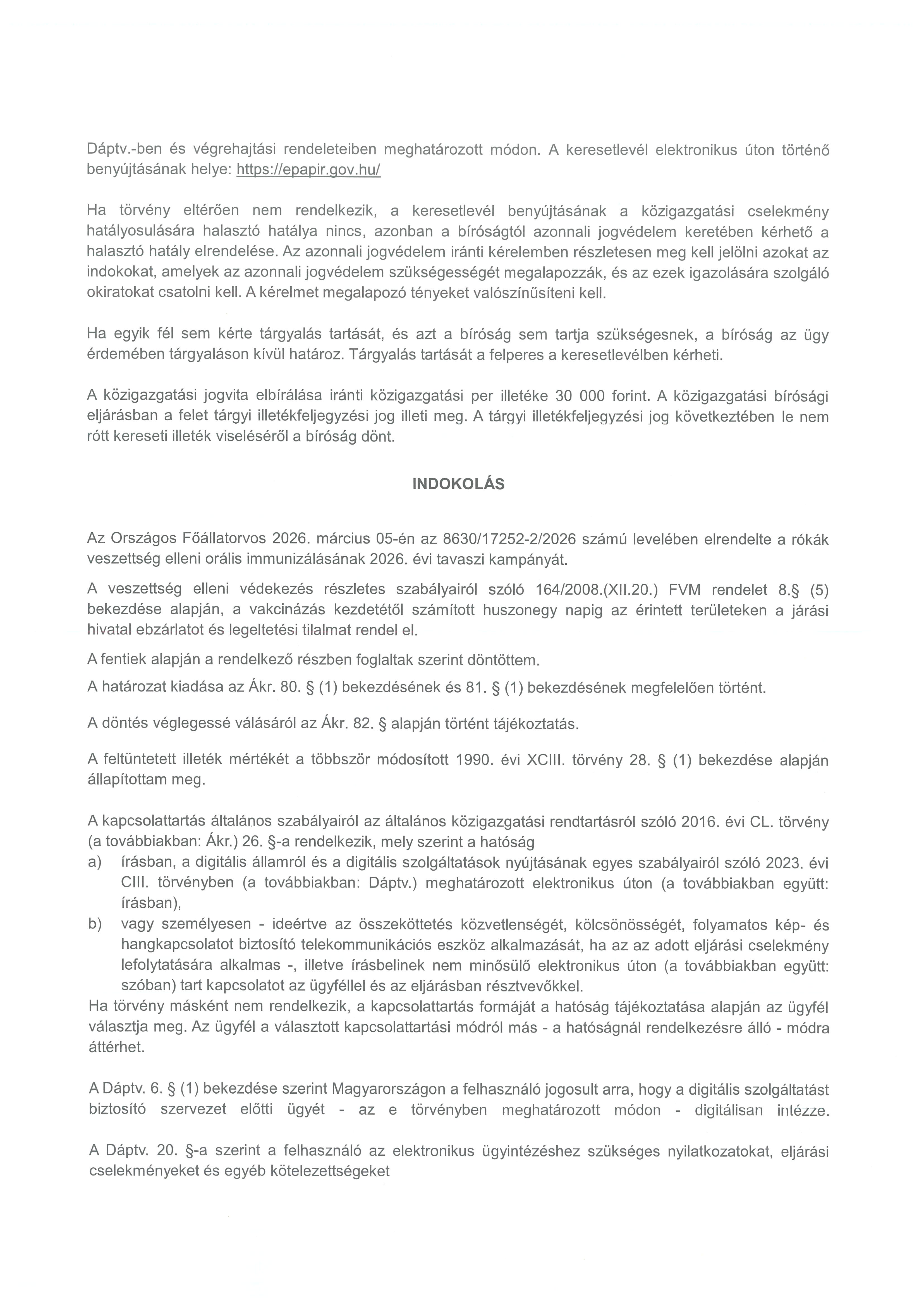 A rókák veszettség elleni orális immunizálásának 2026. évi tavaszi kampánya okán Hajdúnánás, Téglás, Bocskaikert és Hajdúhadház településeken 2026. március 28. - április 17. között EBZÁRLAT ÉS LEGELTETÉSI TILALOM LESZ.