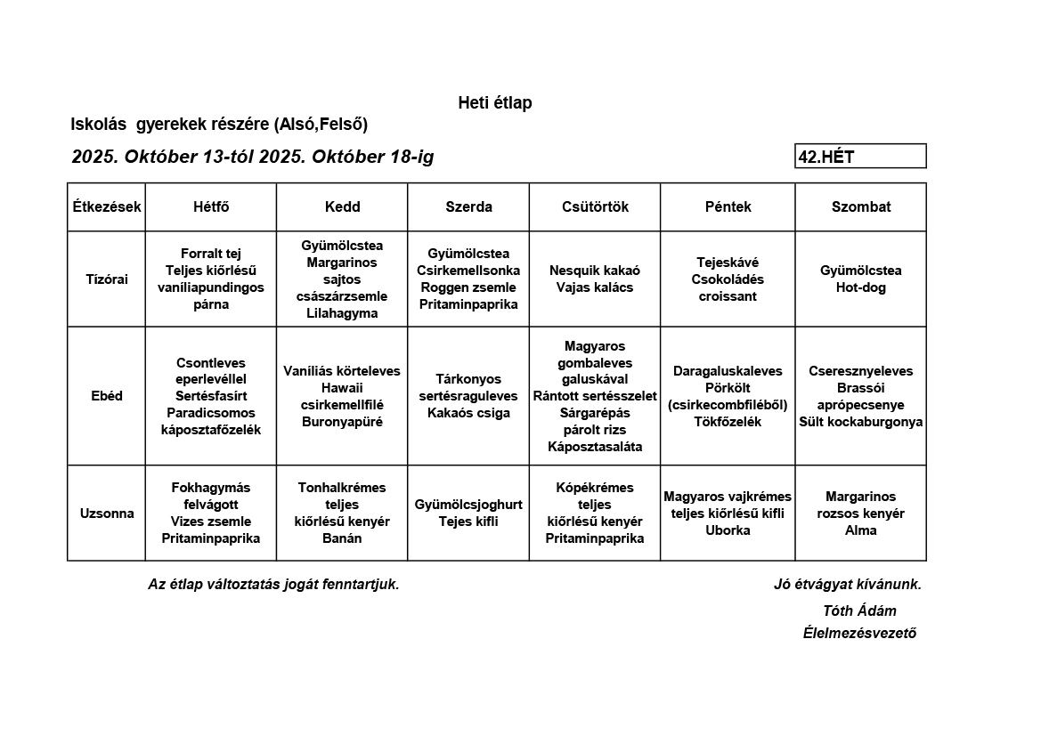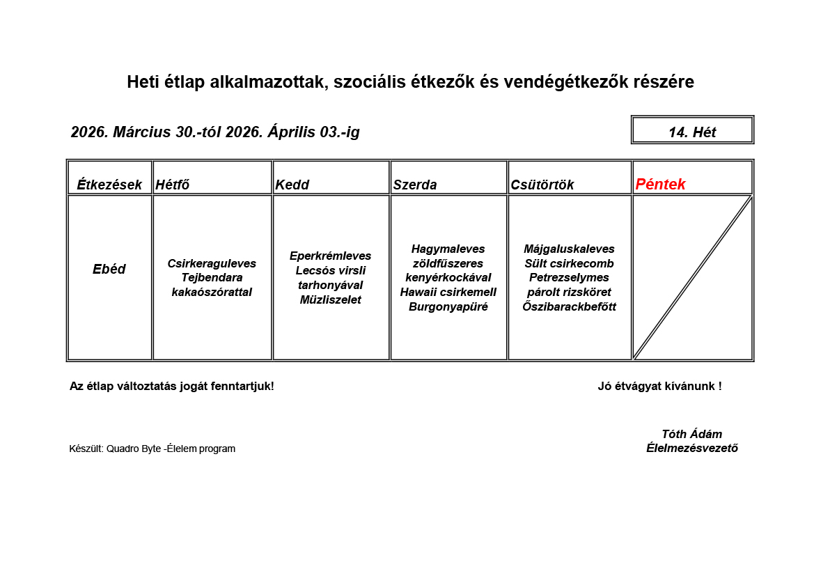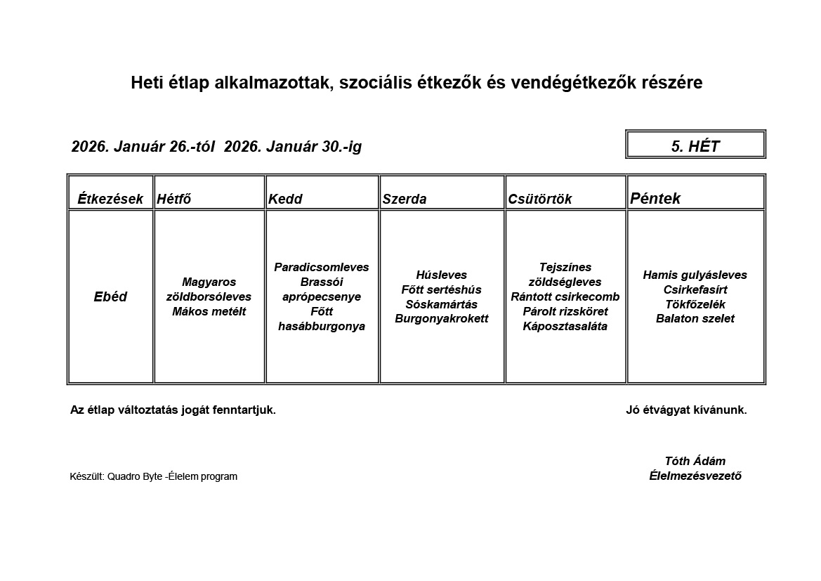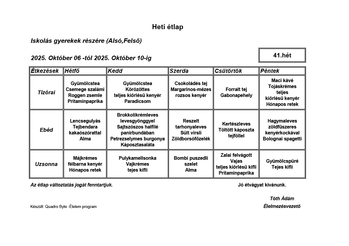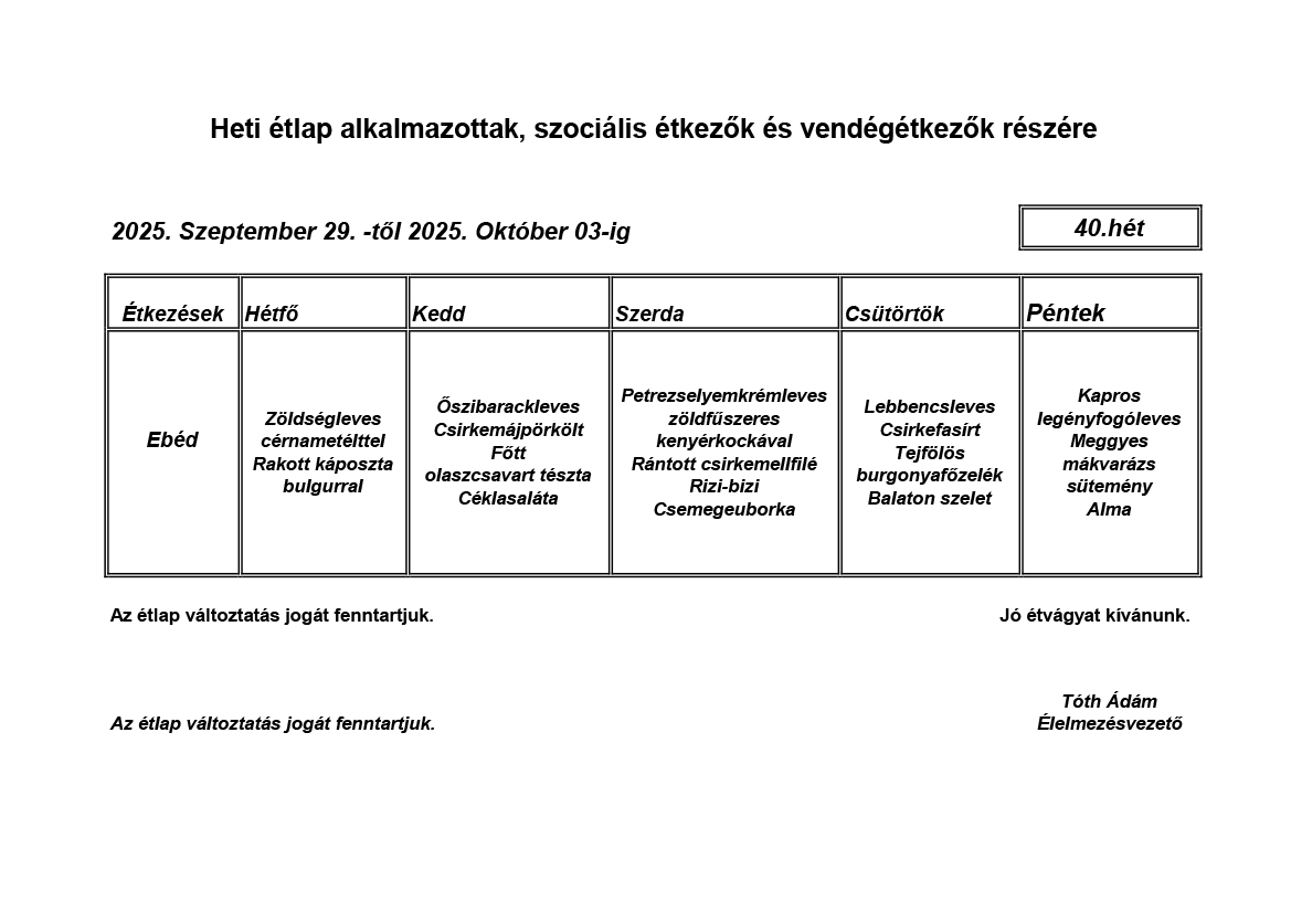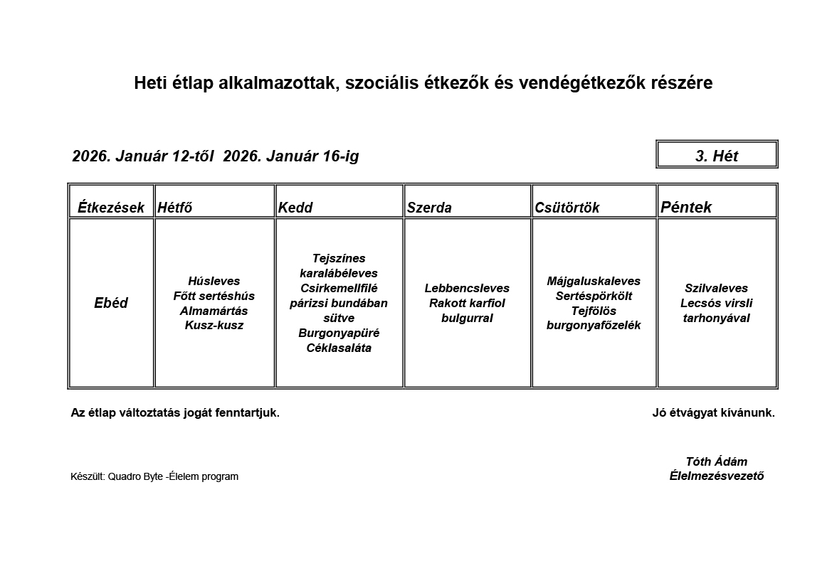 Élelmezésvezető: Tóth Ádám