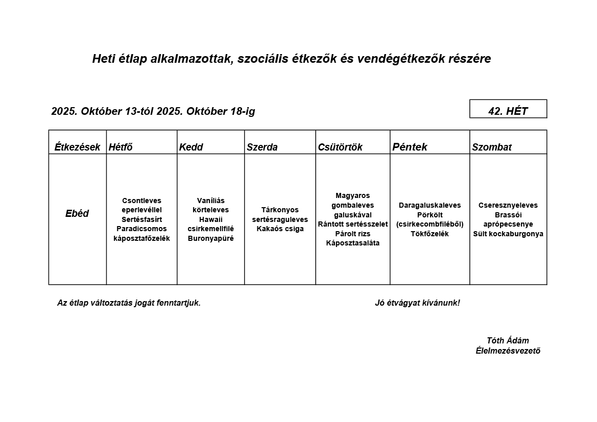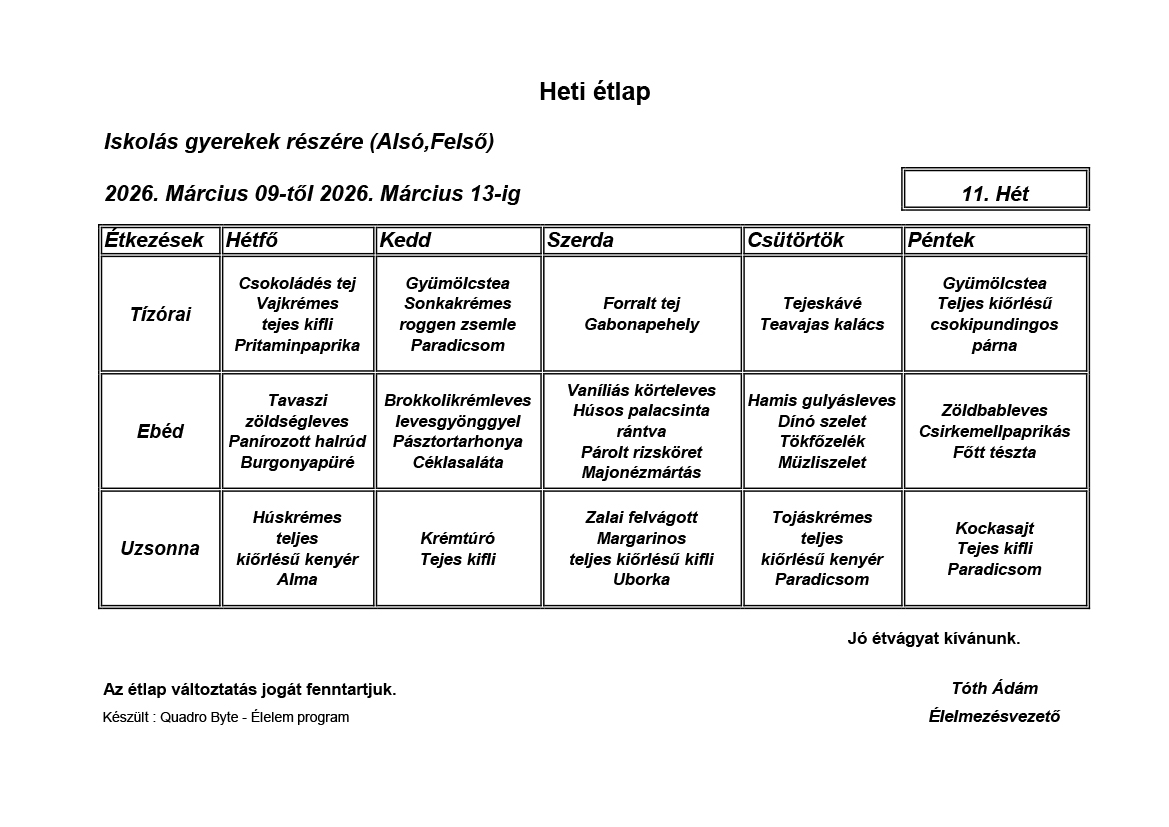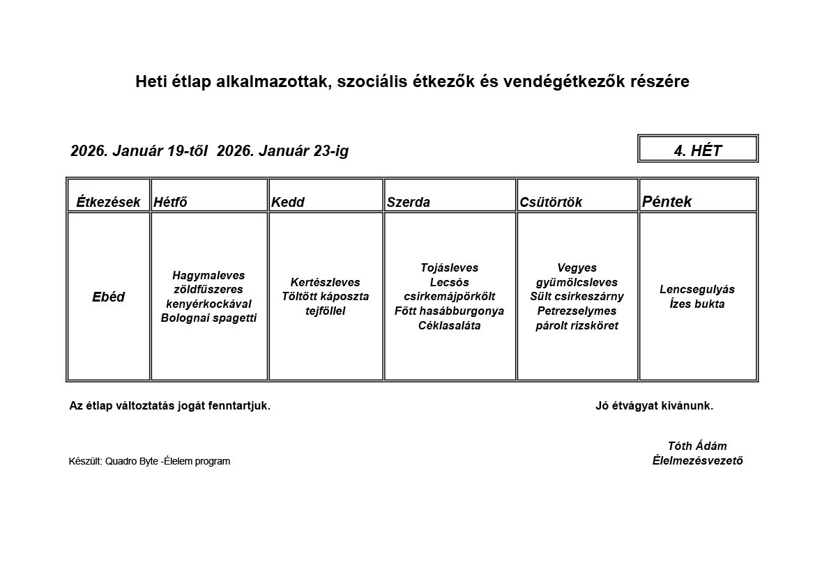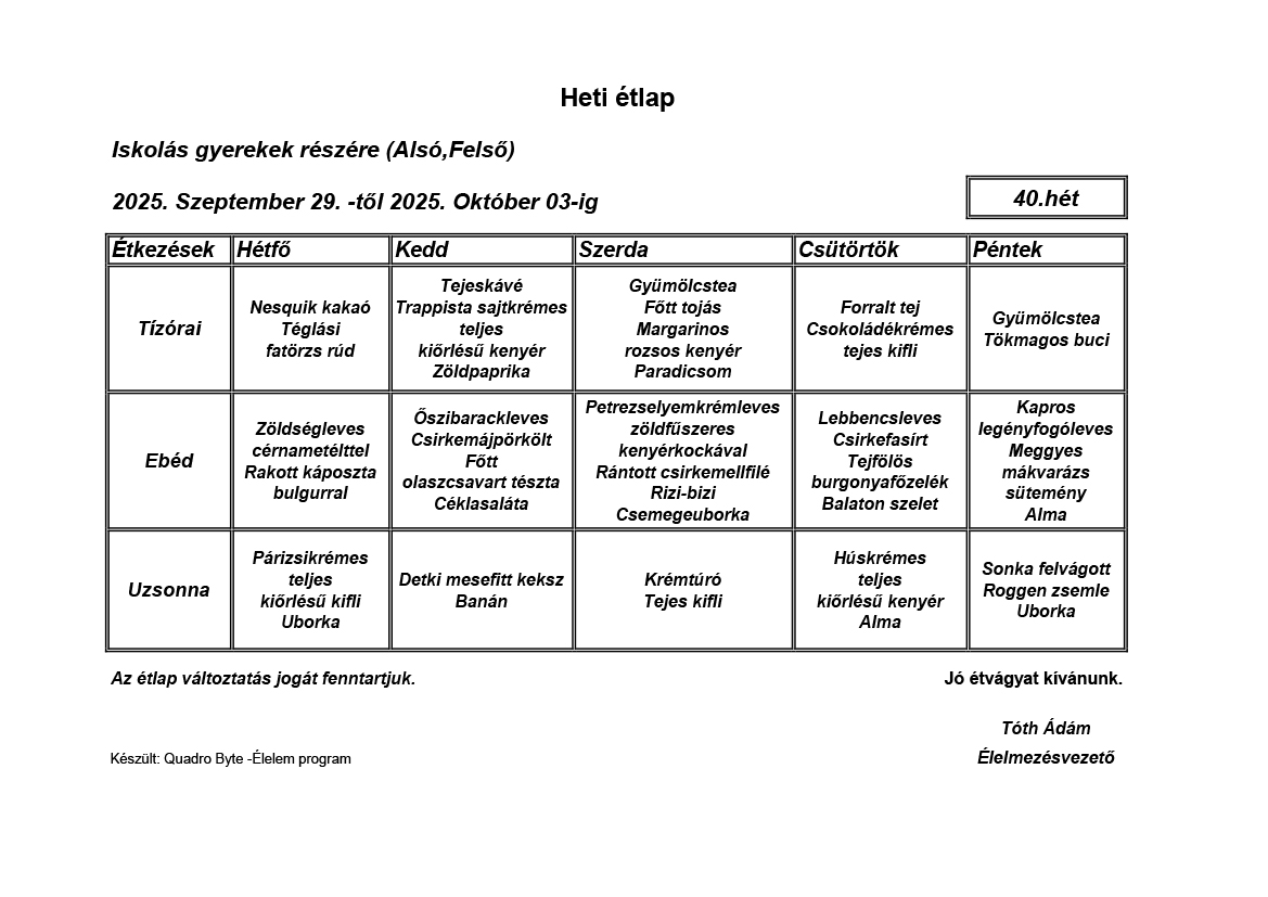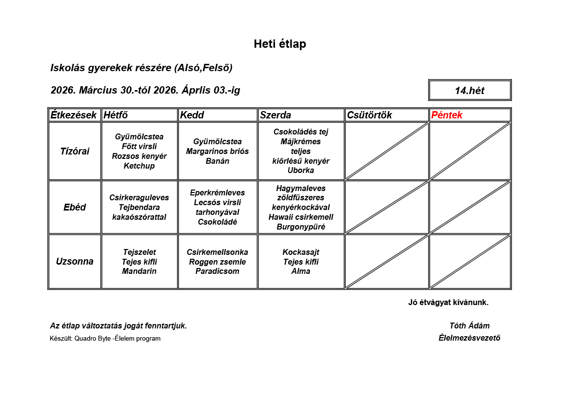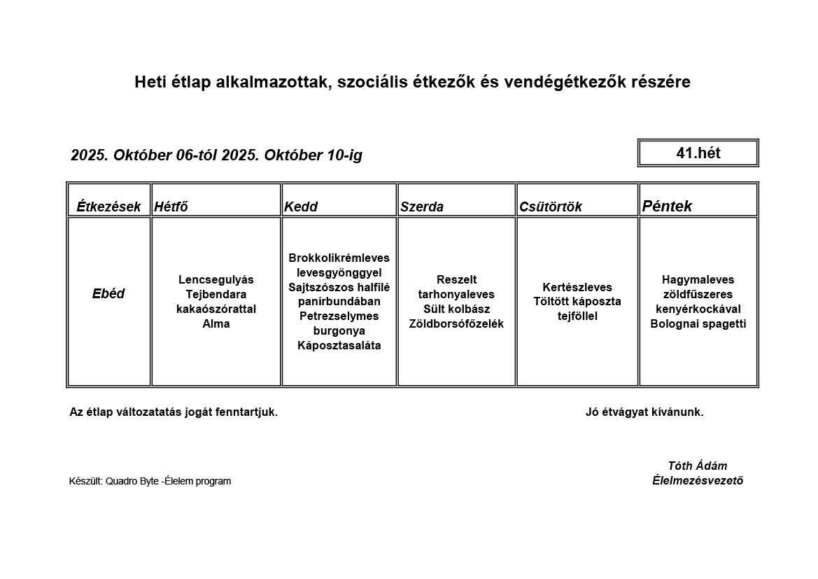 Élelmezésvezető: Tóth Ádám