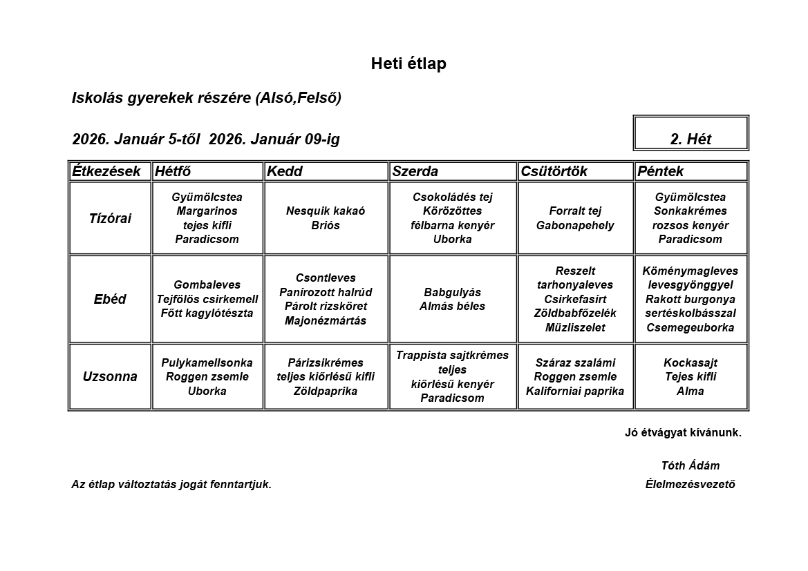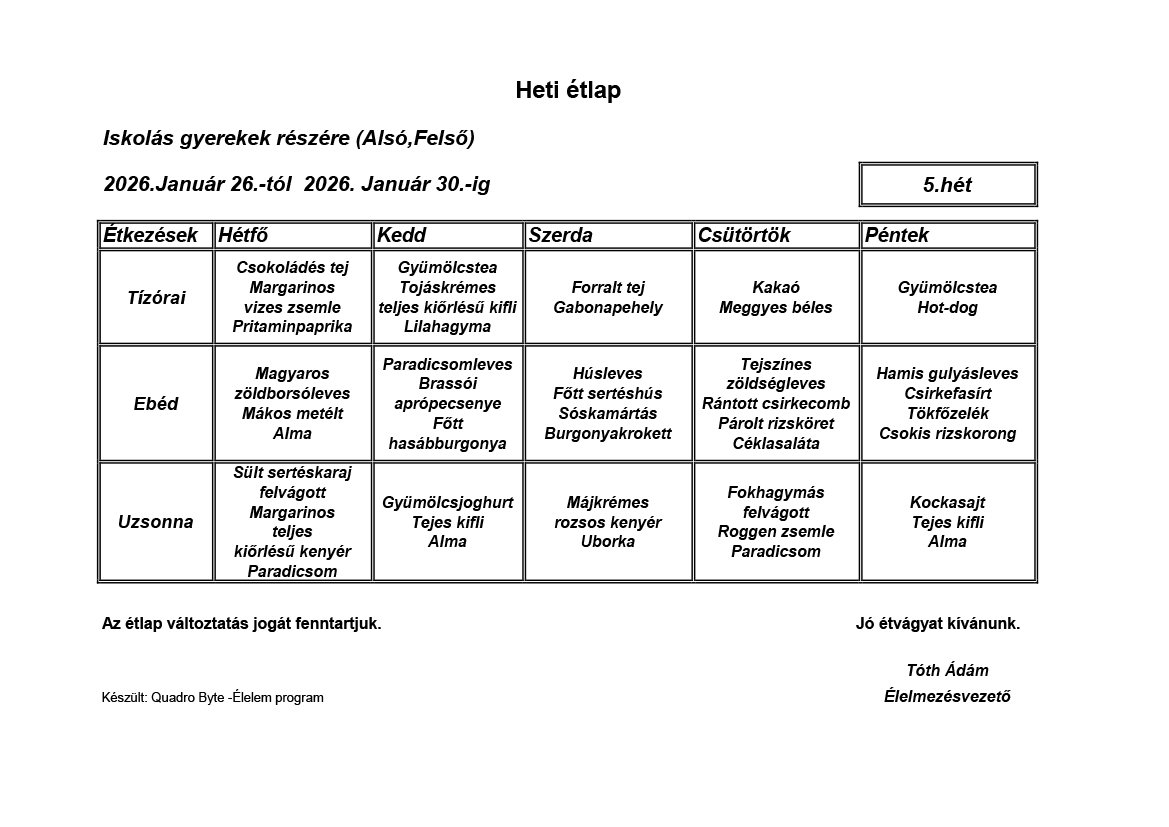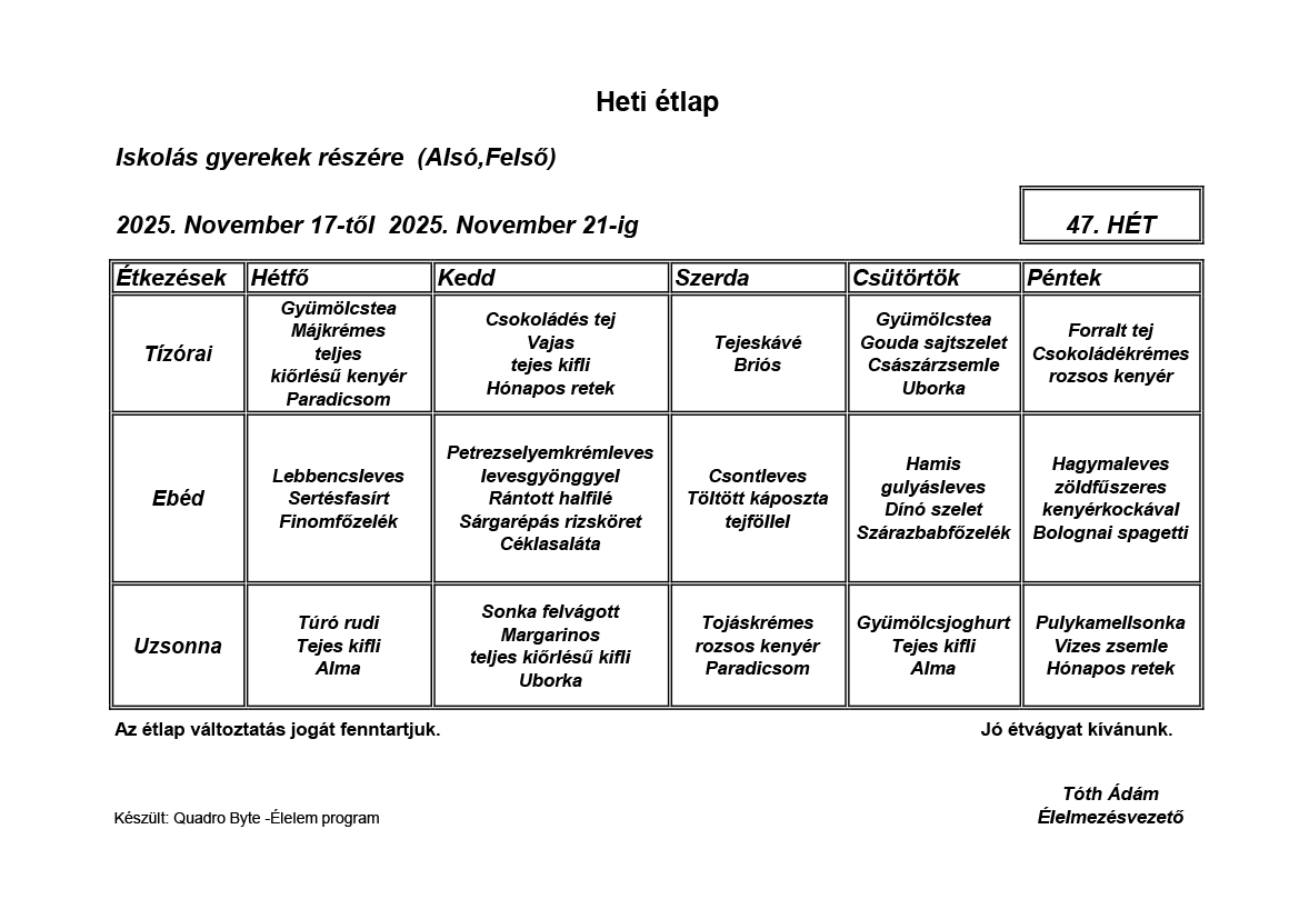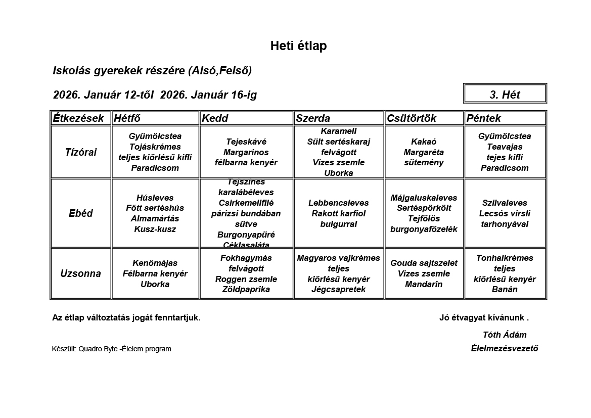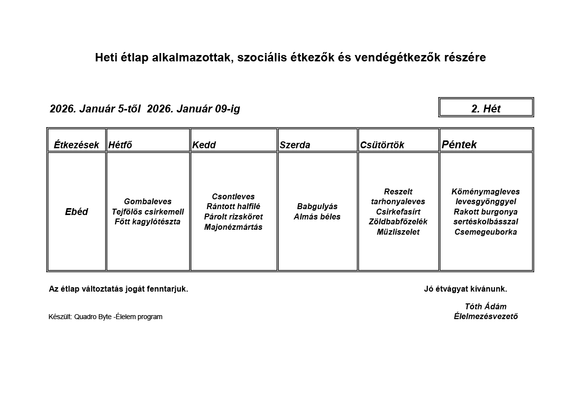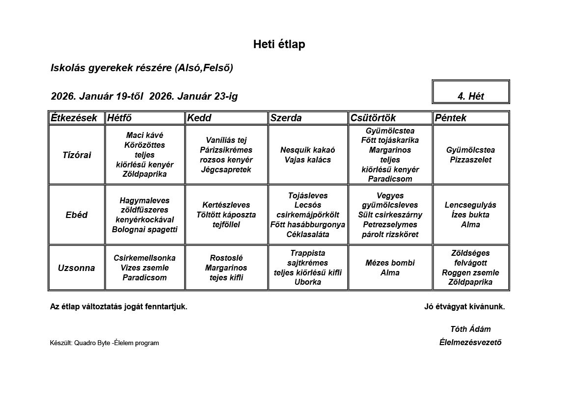 Élelmezésvezető: Tóth Ádám